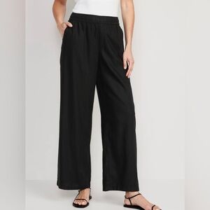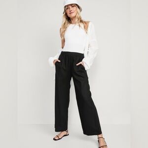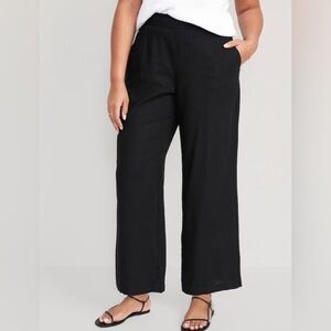 NWT! Black High-Waisted Linen-Blend Wide-Leg -Multiple