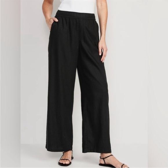 NWT! Black High-Waisted Linen-Blend Wide-Leg -Multiple🤎