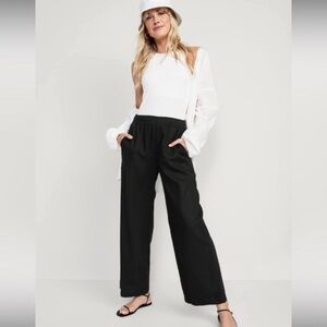 NWT! Black High-Waisted Linen-Blend Wide-Leg Pants - Multiple Sizes