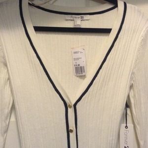 Forever 21 black & ivory cardigan with gold buttons. This has never been worn. Perfect for the fall! It measures 27 1/2" from shoulder to hem so plenty of length.
