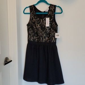 NWT XS black dress with lace top. LBD. Zipper back. Fit and flare style. JustFab. Will consider offers!