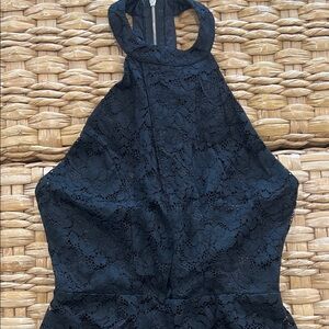 NWT size Medium black lace romper with a halter neckline. Perfect for a night out. Features a key hole cut out in the front.