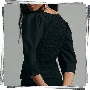 NWT: Black Lightweight Smocked Square Neck Button Front Cardigan (S)