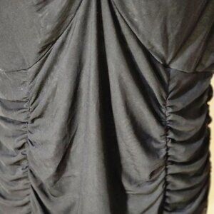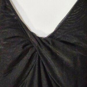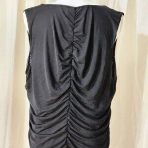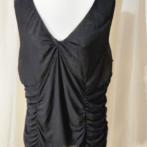 New with tag. Black mesh tank top with ruching throughout. Twisted bodice. Generous sizing.