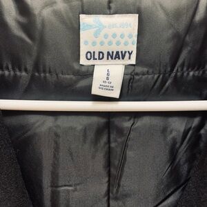 Old Navy black wool swing coat with button closure and high neckline. Size Large (10-12). New with tags.
