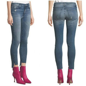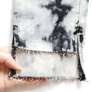 Black, white, and gray tie dye. Distressed high-low step hem. Cropped ankle length. Style: Miranda Off Step High Rise Skinny in color Black Magic
