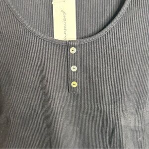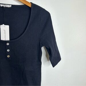NWT Black Ribbed Cotton Stretch Henley Short Sleeve Top Unsubscribed Size Small