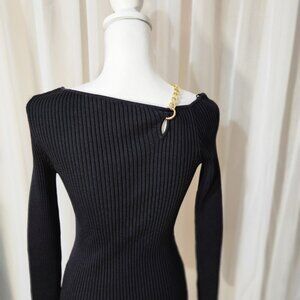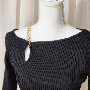 New with tags. Beautiful black ribbed shirt/sweater with chain links and keyhole at shoulder area. Perfect for date night or girls night out!