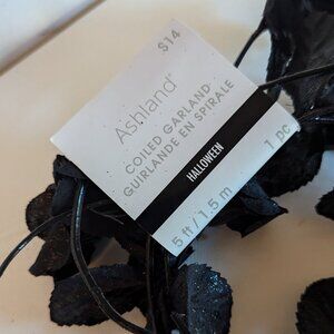Spooky NWT black roses floral garland by Michael's Ashland Halloween collection. This eerie, darkly romantic garland features black roses and leaves with subtle glitter edges. Garland is 5' long, and is in new with tags condition. This garland is perfect for making Halloween themed wreaths, adding to DIY costumes, or other scary Halloween home decor. A haunting Samhain, Dia de los Muertos and gothic Halloween decoration!