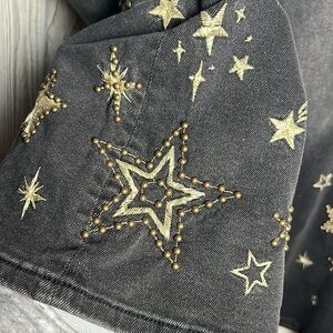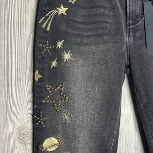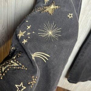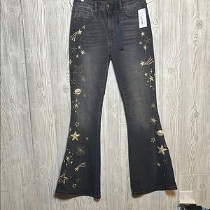 NWT Black SZ 27 Driftwood Gold Shooting Star Embroidered Farrah Flare Jeans