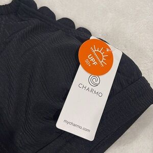 New with tag Charmo women’s sweet scalloped edge ribbed black high waisted bikini. UPF 50 sunblock. Dive into style with this elegant black scalloped bikini set. Perfect for a chic beach look. Women’s size small