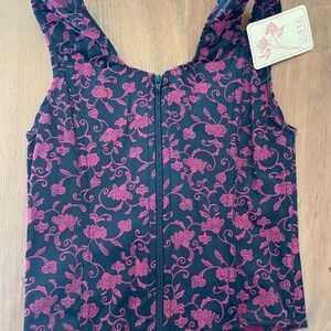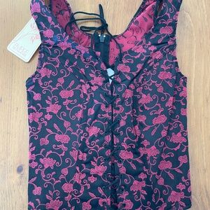 NWT: Beautiful black and scarlet floral front lace up corset with rear zipper. Size medium.