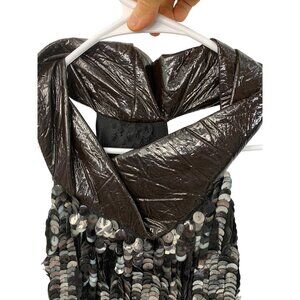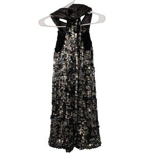 NWT Black Sequin Halter Dress Faux Leather Twist Neck By Poleci Size 0 Silk USA