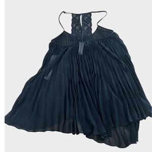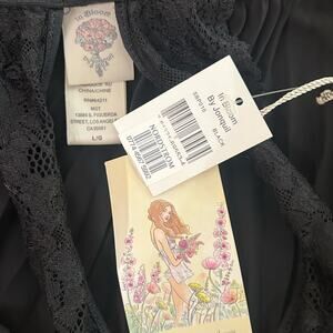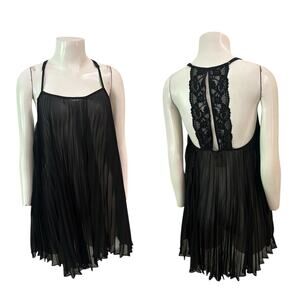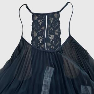 NWT Black Sheer Pleated Lace Babydoll Lingerie Top / Size Large -
