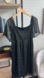 Chic black/silver shimmer midi dress with sheer sleeves, elastic waist, and flattering empire cut!