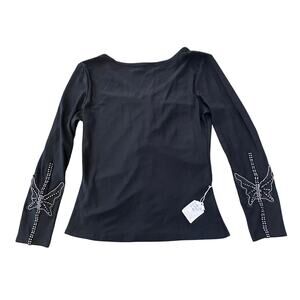 Brand new with original tags by Pretty Angel GORGEOUS ONE OF A KIND TOP WITH RHINESTONE STUDDED BUTTERFLY APPLIQUÉS down middle front of top as well as sleeves.