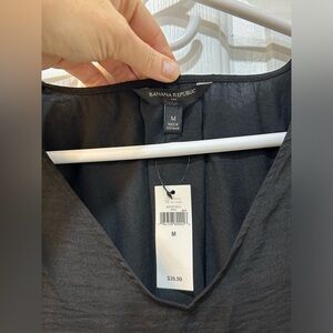 This black chiffon blouse from Banana Republic is a versatile addition to your wardrobe. The V-neck, sleeveless design makes it perfect for any occasion, whether you're dressing up for a party or dressing down for a casual day out. The pullover closure adds convenience, while the lightweight fabric ensures comfort. The blouse features a solid pattern and is made of polyester material, making it easy to care for. Its size M and regular size type ensure a comfortable fit for most women. The blouse is perfect for those who love the punk, gothic, and preppy themes and adds a touch of witchiness to any outfit.