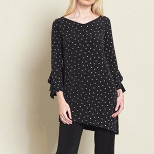 NWT Black Sparkle wide v neck tunic 3/4 rufflecuff