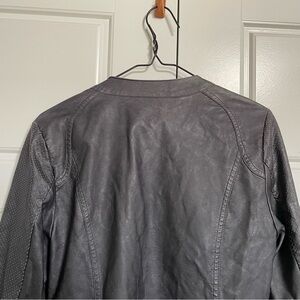 Keywords: Black Swan, Faux Leather Jacket, Gray Jacket, Perforated Jacket, Zip Up Jacket, Casual Jacket, Womens Jacket, Medium Jacket, Fashion Jacket, Outerwear, Contemporary Style, Streetwear