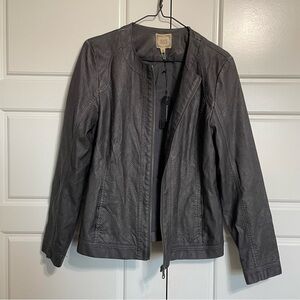 NWT Black Swan Faux Leather Jacket Perforated Detail Zip Up Gray Size M