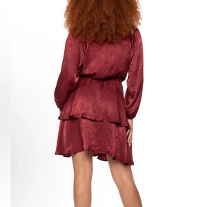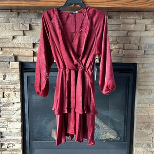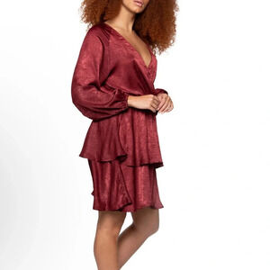 NWT Black Tape Chiffon Layered Faux Wrap Dress Sangria Burgundy Size XS