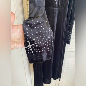 NWT Black Velour Cold Shoulder Maxi Dress With Star Embellishments Size XL