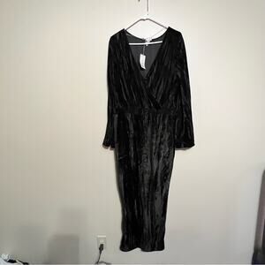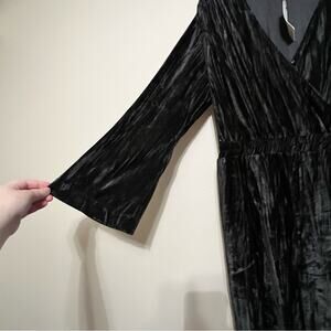 NWT Black Velvet Bell Sleeve Jumpsuit with Pockets