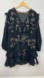 Gorgeous black velvet ruffle mini dress with long sleeves, v-neck, and stunning stencil floral beaded embellishments.