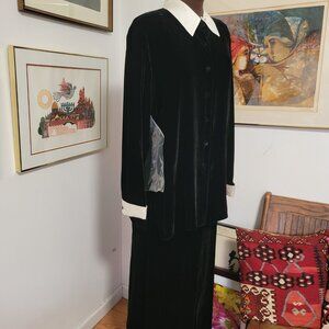 NWT Black Velvet Top and matching Skirt with Ivory Satin Collar Size L
