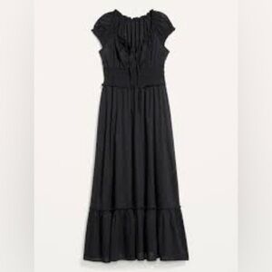 NWT! Black Waist-Defined Puff-Sleeve Clip-Dot Midi Dress - Size Small 💜