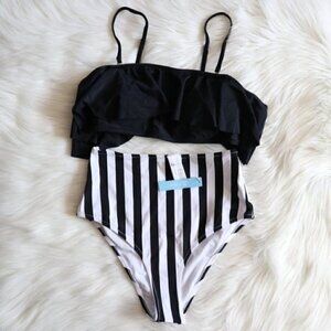 Tags: Swim, Cupshe Swim, Cupshe Bikini, Bikini, Bikini Set, Swimsuit, Bathing Suit, NWT, Sale, Cups Swimwear, Swimwear, Cupshe Bathing Suit, Two Piece, Tropical, NWT Bathing Suit, Black, White, Ruffle, Striped, High Waisted, High Waisted Bathing Suit, High Waisted Bikini