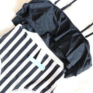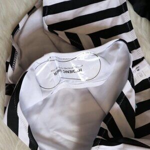 NWT Black White Bikini Set Size Medium High Rise Bathing Suit Stripe Print