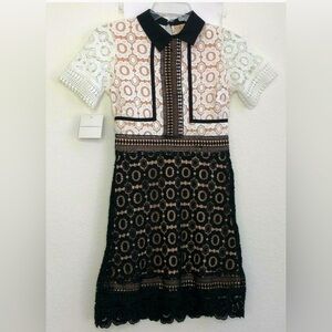 NWT!! Black White Crochet Lace Mini Dress Short Sleeve
