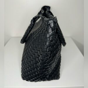 NWT Black Woven Vegan Leather Basket Bag with Purse Insert