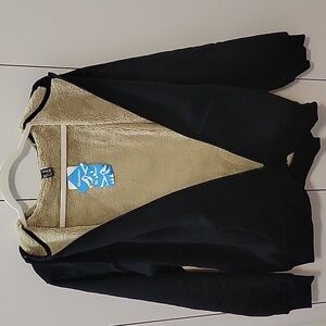 Classic black zip-up hoodie. Features a drawstring hood and front pockets. Perfect for casual wear.