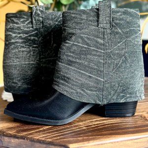 NWT Black and Denim Fold Over Pull-On Western Ankle Boots