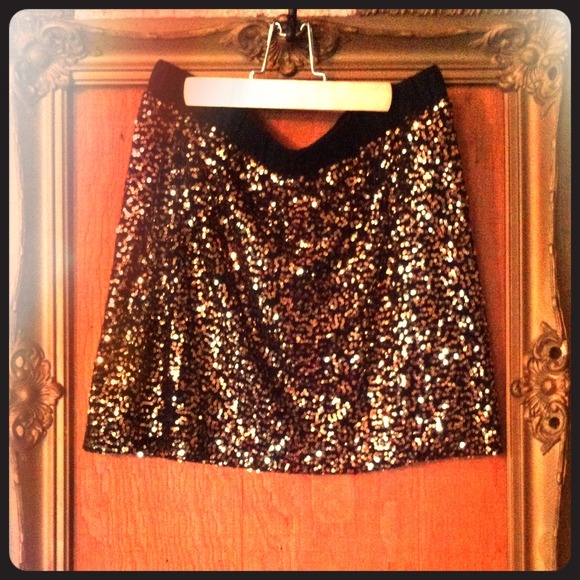 Comfy and sexy! Black and gold sequin mini perfect for a fun night on the town! It has a stretch waist band so it makes it comfortable! It fits a size 6/8