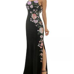 Bring on the blooms in this sequined gown from xtraordinary flaunting a lace-up back.