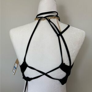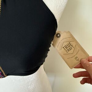 NWT Black Halter Top Bathing suit with Multicolor Pattern XL