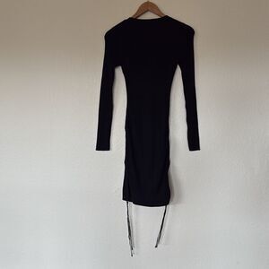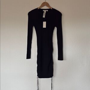New with tags black long sleeve ribbed sweater dress with draw string side detail to make shorter to your liking