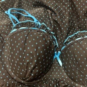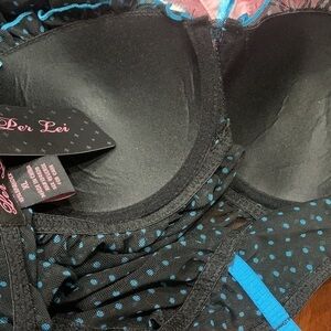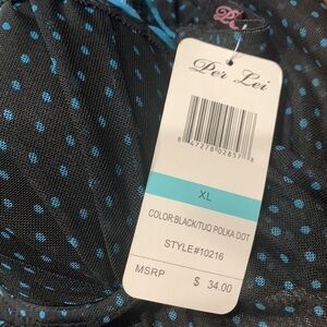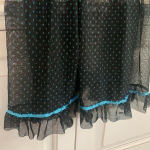 NWT Per Lei Black/turquoise babydoll chemise — built in underwire bra — adjustable straps — satin ribbon detail with Ruffle hemline