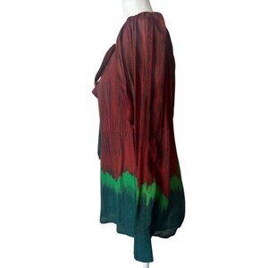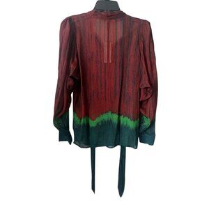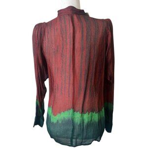 NWT Blank London Burgundy Green Tie Neck Semi-Sheer Long Sleeve Blouse Small
