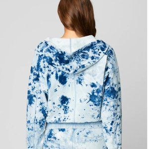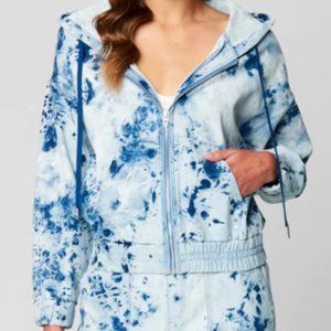 Blue tie-dye zip-up knit denim hooded sweatshirt