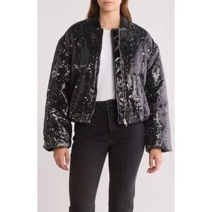 Blank NYC Jacket Sequin Full Zip Bomber Puffer