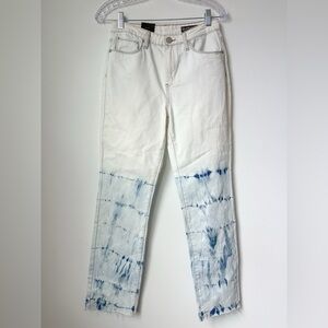 NWT Blank NYC Madison Crop Tie Dye Bleached Raw Hem High Rise Jean White Blue 26