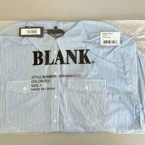NWT Blank NYC Oversized Stripe Collared Shirt in Blue Sky Size L