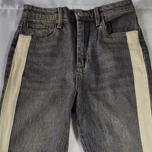 Chic straight leg jeans by Blank NYC. Gray with cream side stripes. Perfect for casual wear.