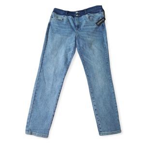 Blank NYC The Great Jones high-rise skinny jeans. Light wash with darker contrast waistband. Size 31, roughly a size 12. Brand new with tags.