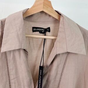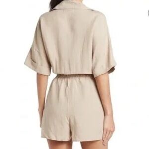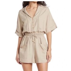 NWT BlankNYC Linen Blend Short Sleeve Button Front Romper Tan