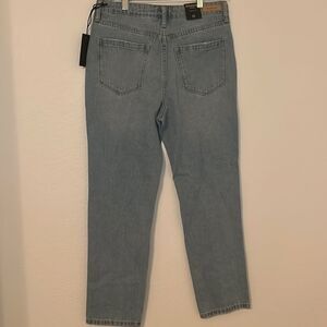 These distress jeans by blank NYC are brand new with tags. Pockets on front and back along with a zipper fly. Distressing throughout front as shown in photos. These are true denim non-stretch jeans. Retails for $98.